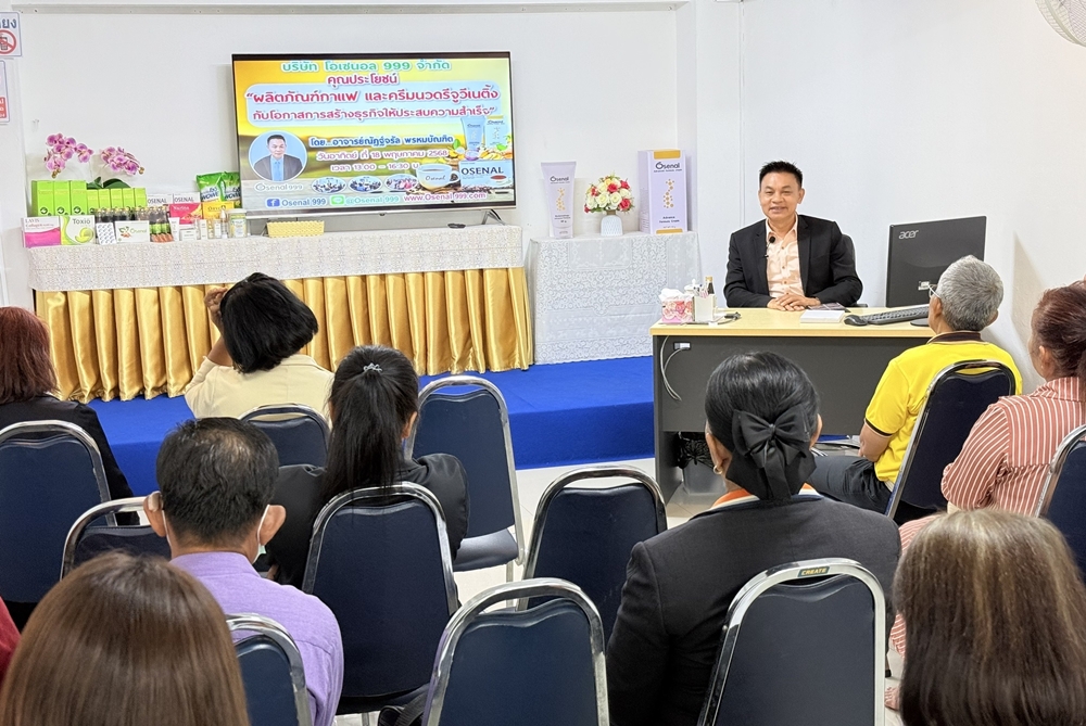 ภาพบรรยากาศ การบรรยาย " คุณประโยชน์ ผลิตภัณฑ์กาแฟ และครีมนวดรีจูวีเนติ้ง บอดี้ โลชั่น" โดย...ท่านอาจารย์ณัฏฐ์จรัล พรหมบัณฑิต เมื่อวันที่ 18 พฤษภาคม 2568 เวลา 13.00 -16.30 น. ณ ห้องประชุมบริษัทฯ